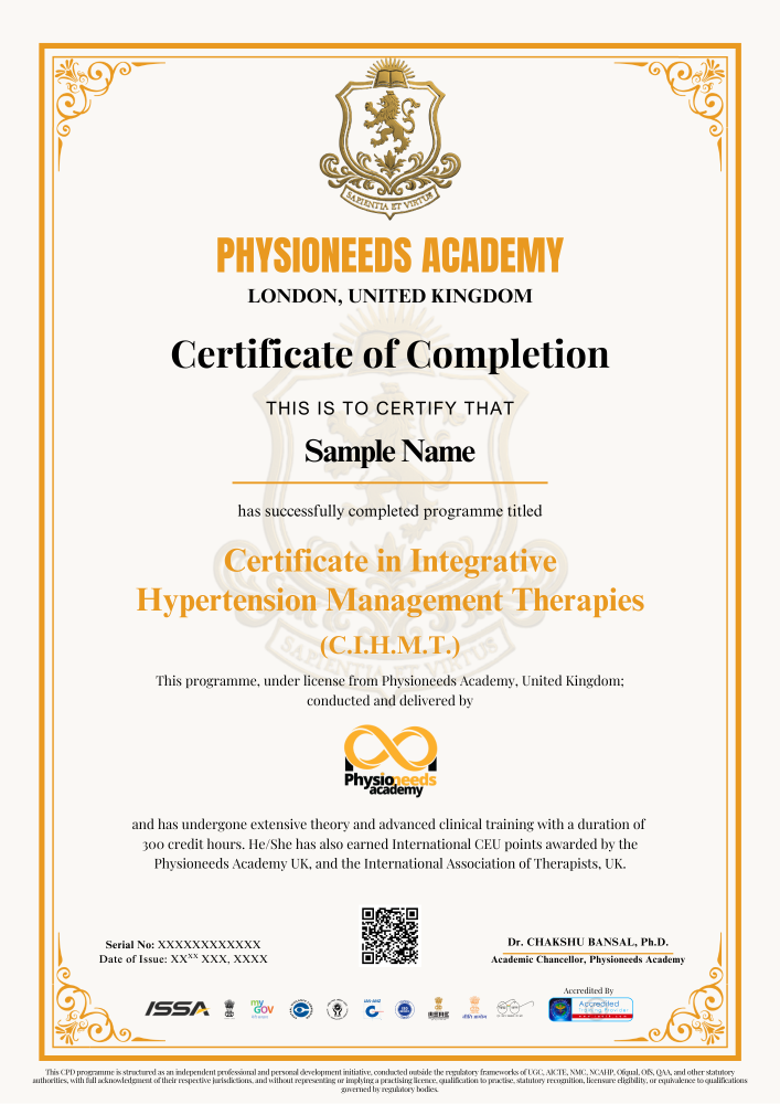 This comprehensive program is designed to equip professionals with an integrative understanding of Integrative Therapies in Hypertension Management, blending ancient healing traditions with modern therapeutic practices.