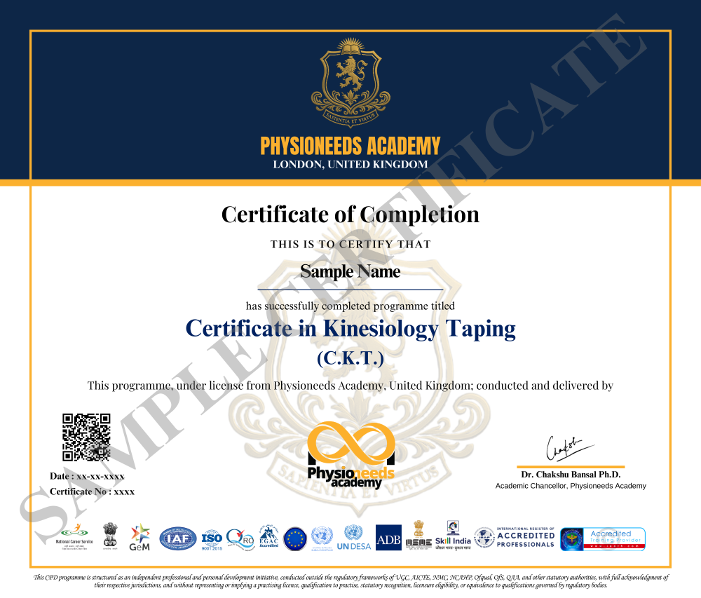 The Certified Kinesiology Taping Expert course is a comprehensive deep dive into the art and science of taping techniques. Master the science and strategy behind effective taping. This advanced certification program is crafted for physiotherapists, sports therapists, and allied health professionals aiming to elevate their clinical outcomes. Explore Kinesiology taping for a wide spectrum of conditions—from musculoskeletal and neurological disorders to pediatric, women’s health, biomechanical, and postural dysfunctions. With over 130 taping techniques and evidence-based protocols, you’ll build expertise to support pain relief, injury prevention, and optimized recovery across diverse patient populations..