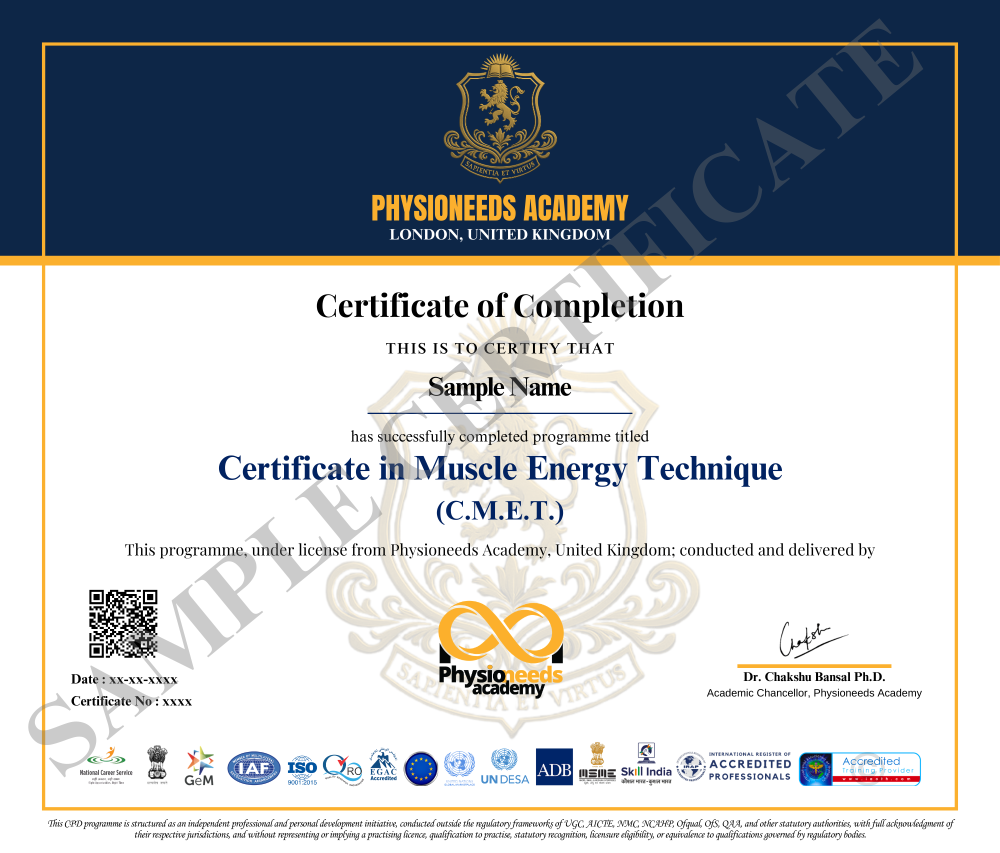 The Certified Muscle Energy Technique (MET) Course is an in-depth exploration into the art and science of neuromuscular manual therapy. Designed for physiotherapists, this course focuses on assessing, diagnosing, and applying MET techniques for musculoskeletal, neurological, paediatric, women’s health, biomechanical, and postural dysfunctions. Whether you are treating joint restrictions, chronic pain, or movement limitations, this course equips you with MET applications and real-world clinical strategies to enhance mobility, restore function, and elevate your therapeutic outcomes.