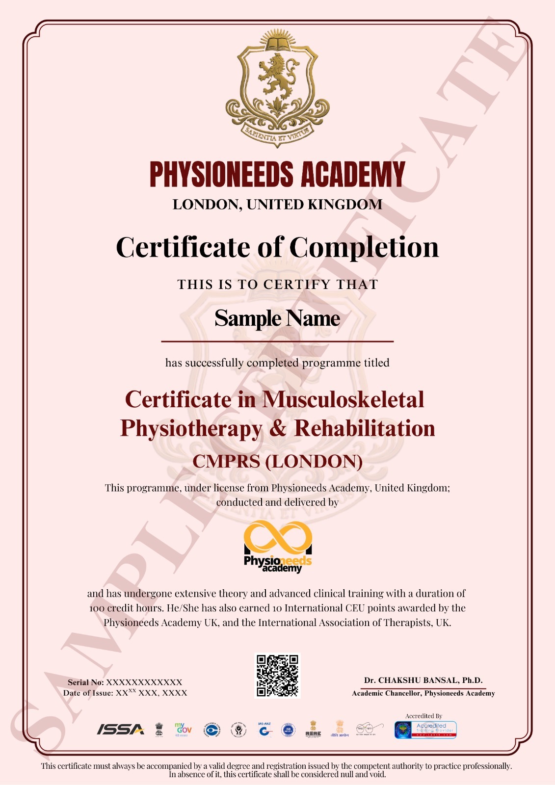 The Certificate in Musculoskeletal Physiotherapy and Rehabilitation is an intensive training program aimed at equipping physiotherapists with specialized skills in musculoskeletal assessment, treatment, and rehabilitation strategies. This course offers a structured approach to musculoskeletal care, integrating manual therapy, exercise prescription, dry needling, taping, and IASTM for optimal patient recovery.Through interactive lectures, live practical sessions, and real-world case studies, participants will develop competency in diagnosing and treating musculoskeletal disorders using the latest evidence-based techniques.