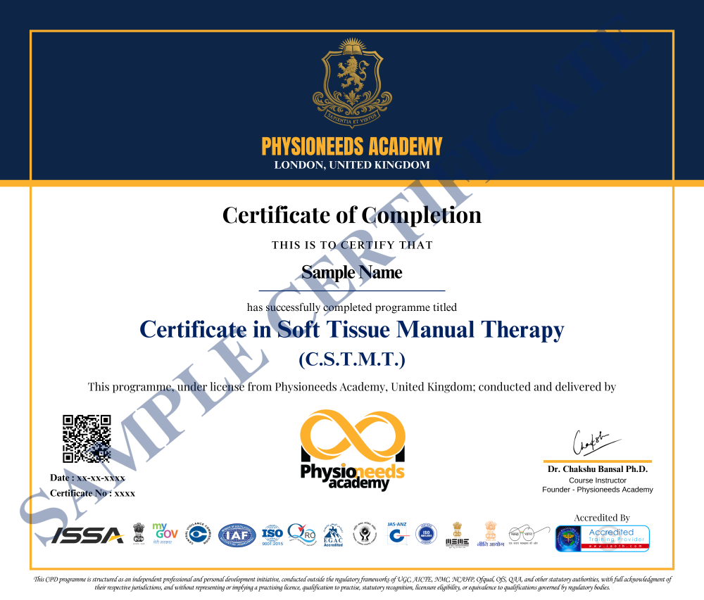 The Certified Soft Tissue Manual Therapy Expert (CSTMTE) course offers an in-depth exploration into the clinical application and scientific foundations of advanced soft tissue manual techniques. Designed for physiotherapists, sports therapists, this course covers both fundamental and advanced methods to treat myofascial, musculoskeletal, and neurodynamic dysfunctions. Learn to accurately assess, diagnose, and apply manual therapy strategies for pain relief, neuromuscular re-education, athletic recovery, and rehabilitation. From trigger point release to segmental and systemic approaches, this course provides you with evidence-based protocols and real-world clinical strategies to elevate your practice with confidence and precision.